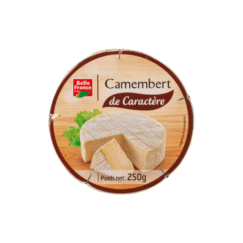 Découvrez le Camembert Caractère Belle France 250g, un fromage à pâte molle au goût prononcé et riche en saveurs. Idéal pour les amateurs de fromages puissants, il se déguste sur plateaux, tartines ou dans vos recettes gourmandes.