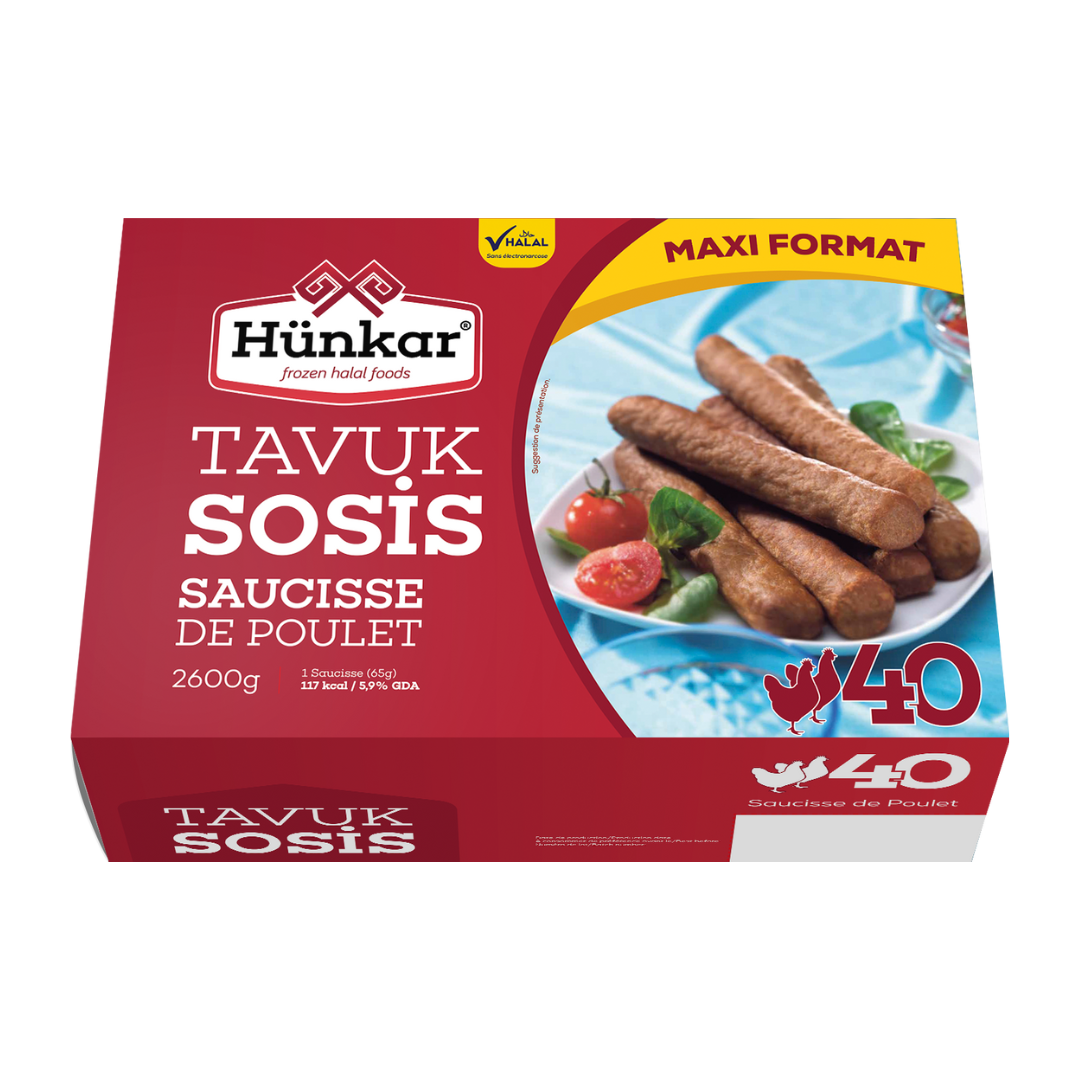 Régalez toute la famille avec les Saucisses/sosis de Poulet Hünkar, pratiques et savoureuses. Préparées à partir de poulet de qualité, elles offrent une texture tendre et un goût délicat, parfait pour des repas rapides, des barbecues ou des sandwichs gourmands. Idéales pour gagner du temps sans compromis sur le goût.