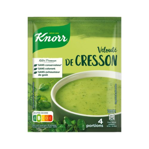 Découvrez un potage délicatement parfumé avec le Velouté de Cresson Knorr, une soupe instantanée qui allie simplicité et saveur authentique. Préparée à partir de cresson soigneusement sélectionné, cette recette offre un velouté onctueux, idéal pour un repas léger ou une entrée réconfortante.