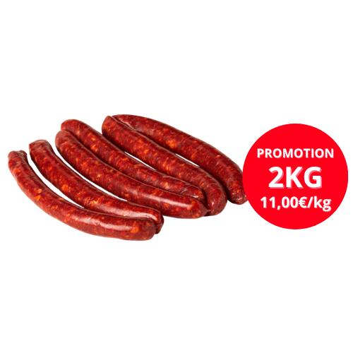 Découvrez nos merguez maison, préparées avec soin par notre boucher à partir de viande de bœuf et d’agneau sélectionnée. Leur mélange d’épices offre un goût authentique et généreux, typique des vraies merguez artisanales.