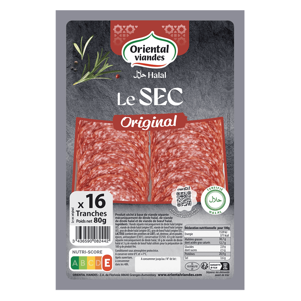 Le Sec Original – Tranché d’Oriental Viandes est un produit halal de qualité. Préparé avec soin, il offre une texture délicate et un goût intense qui ravira vos papilles. Parfait pour des apéritifs gourmands, des sandwichs savoureux ou pour agrémenter vos plats du quotidien. Son format pratique en tranche facilite son utilisation, vous permettant de l’ajouter facilement à vos recettes préférées. Le Sec Original – Tranché est un incontournable pour tous les amateurs de charcuterie fine.