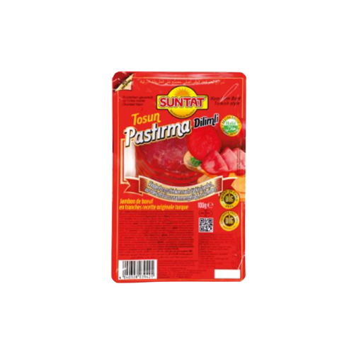 Découvrez le pastrami de bœuf/viande séchée/pastirma Suntat, une charcuterie fine et savoureuse au goût délicatement épicé. Préparé à partir de viande de bœuf sélectionnée puis assaisonné avec soin, ce pastrami offre une texture tendre et une saveur riche, idéale pour sublimer vos repas du quotidien. Finement tranché et prêt à consommer, il se déguste aussi bien dans des sandwichs gourmands que dans des wraps, salades ou plateaux de charcuterie.